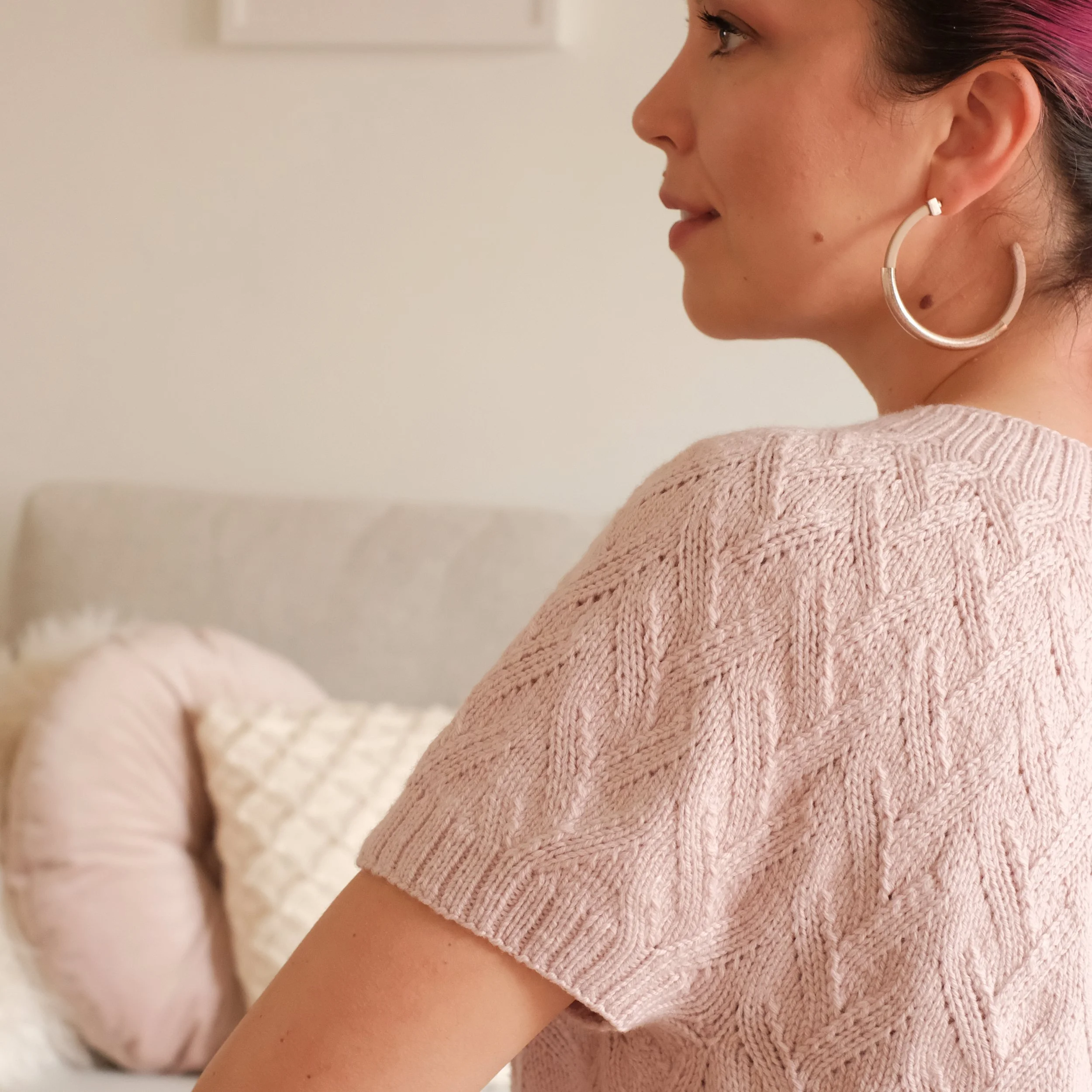 Straight silhouette, some positive ease, and gentle neck shaping highlighting collarbones make Moonflower a comfortable to wear piece perfect for warmer weather and layering.